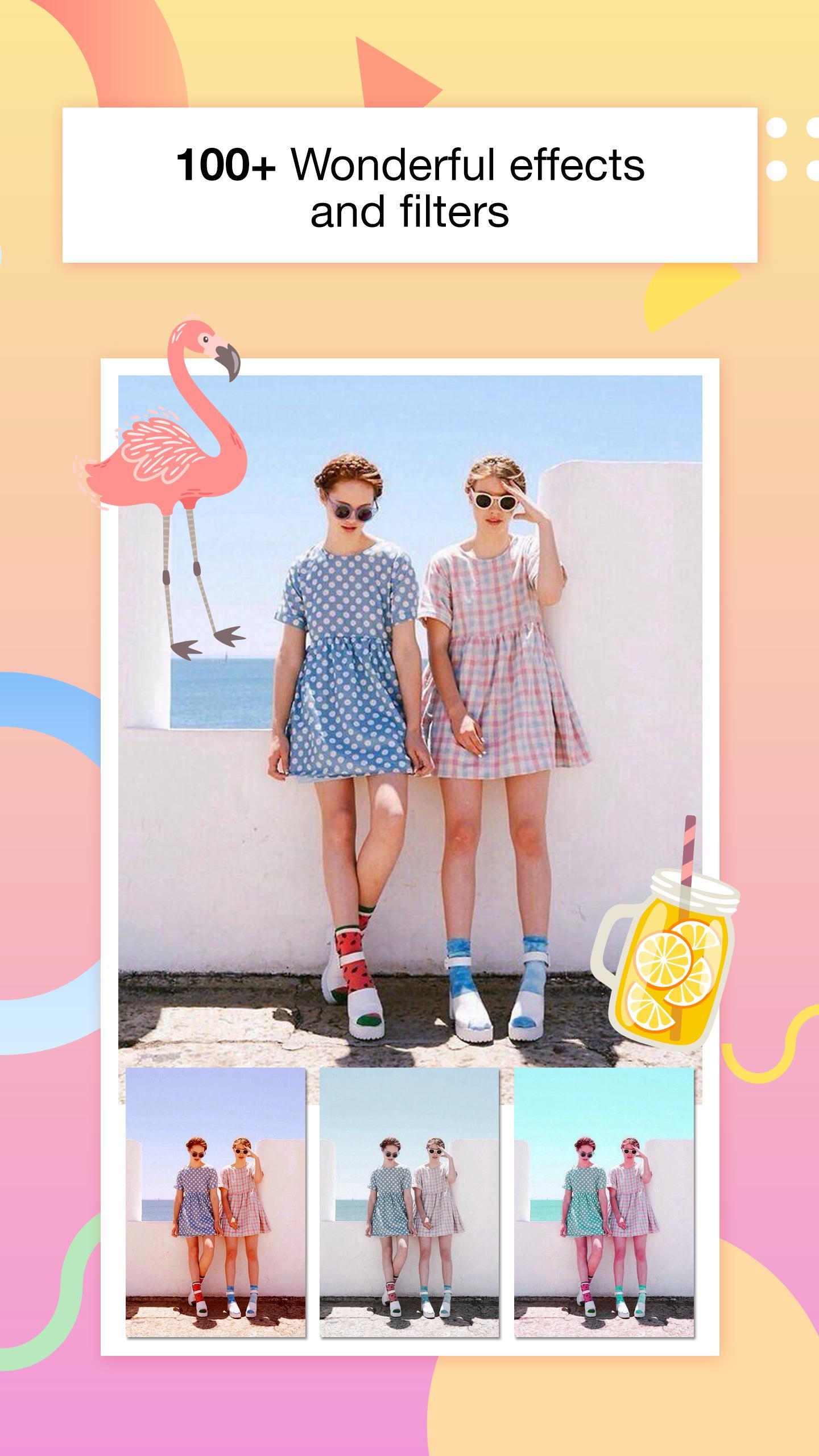 Welcome to the hd photo editor with special effects application. This is an all-in-one image editor apps that lets you: add text on photo, select beauty filters for pictures and frame photo collage, and merge multiple images into one frame, add sticker on photo, collage creator