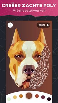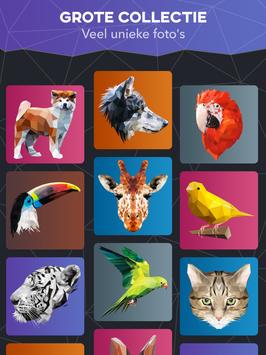 Maak u klaar voor de unieke polygoonkunstervaring! Dit is een pittige NIEUWE kleurentrend waar u gewoon moet aan meedoen! Maak uw eigen meesterwerk in een mozaïek van kleine driehoekjes! Afbeeldingen veranderen in technisch geometrische kunstwerken!