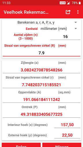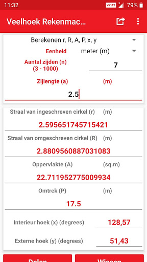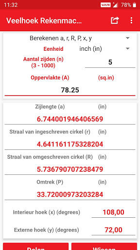 Veelhoek Rekenmachine helpt u om essentiële parameters van de verschillende soorten veelhoek snel en gemakkelijk te berekenen. Automatisch en nauwkeurige berekeningen.