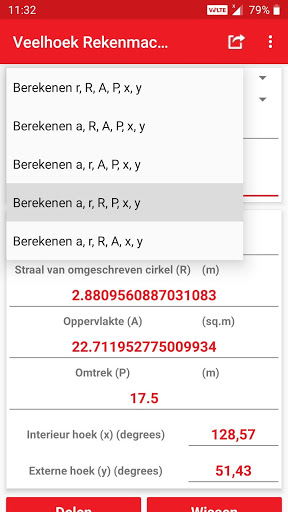 • Berekende waarden en resultaten kunnen worden gedeeld met sociale media, e-mail, berichten en andere deel-apps.
