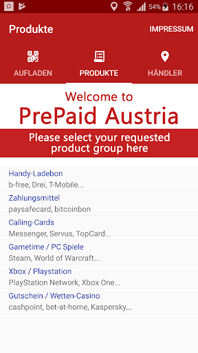 Prepaid Oostenrijk-producten kunnen in veel baan worden gekocht.Met de app bespaart u de roeping van LADCODES!