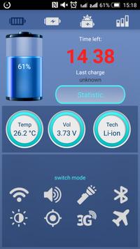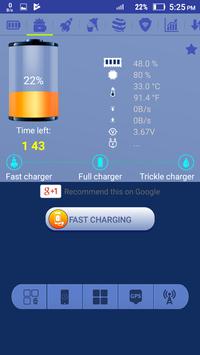 can boost charging speed up; calculate temperature of your android devices, volume and technology of battery; show charging levels, optimization for quick charging; support 3 charging mode; stop some applications running under background.