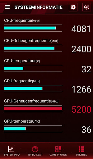 - Real time-weergave van systeeminformatie, zoals CPU/GPU-frequentie, spanning, temperatuur en overige.