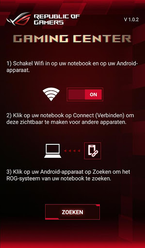 Ondersteunt verbinding met PC's ROG Gaming Center v2.5.x via Wi-Fi Direct of Bluetooth.