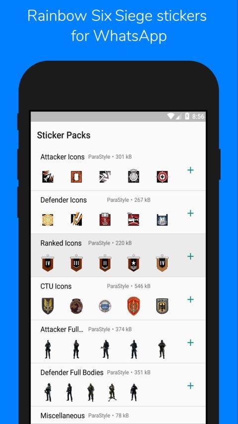 Rainbow Six Siege stickers pack for WhatsApp. Currently has operator icons, ranked icons, full bodies, CTU icons and more!