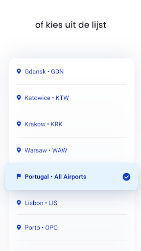 • alle luchthavens in een land selecteren als vertrek- of eindpunt van je reis