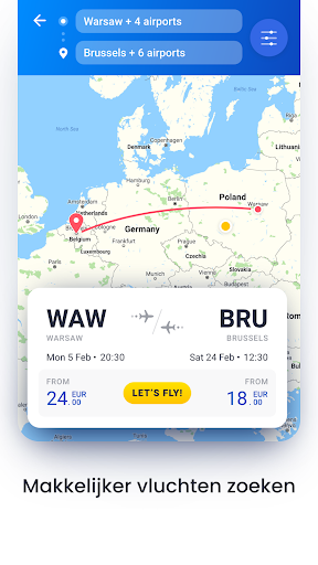 Ben je het moe te veel tijd te spenderen om een vlucht te vinden die jou het beste past? Zou het niet makkelijker zijn om alle luchthavens van een land of regio te kunnen selecteren en meteen de laagste tarieven te krijgen? Onze zoekfunctie op kaartbasis is net wat je nodig hebt. Selecteer MEERDERE vertrekken en bestemmingen en we tonen je alle beste tarieven voor hen! Kies simpelweg een regio op de kaart, bepaal de instellingen en krijg de goedkoopste Ryanair-tarieven. Als je de route hebt gekozen, boek je die met een simpele tik op de Ryanair - Cheapest Fares app.