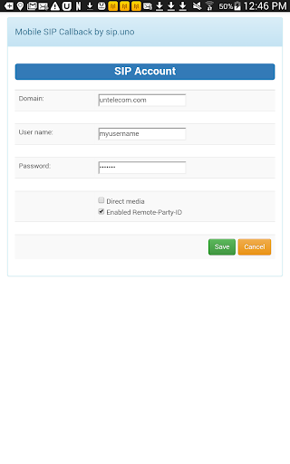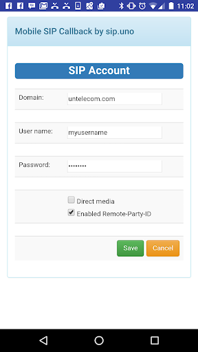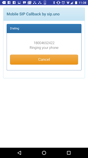 Hoe het werkt? U configureert de applicatie met details van uw SIP-account en uw telefoonnummer. Vervolgens gaat u het nummer in dat u wilt bellen of haalt u het van uw apparaatcontacten. De toepassing belt u eerst uw telefoon en plaats vervolgens de oproep naar de bestemming. Ja, het is zo eenvoudig. U kunt deze optie nuttig vinden wanneer uw internetverbinding niet kan worden gebruikt voor betrouwbare VoIP-oproep van hoge kwaliteit. SIP Mobile Callback gebruikt alleen uw internetverbinding om kleine datapakketten uit te wisselen met SIP.UNO Server om de oproep te initiëren en te controleren.