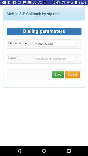 SIP Mobile Callback Hiermee kunt u uw favoriete SIP-account gebruiken om een telefoongesprek te maken zonder VoIP op uw mobiele telefoon te gebruiken.