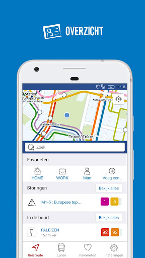 Eventuele storingen op uw vaak gebruikte lijnen en de lijnen in uw omgeving zijn op elk moment beschikbaar. In 1 klik krijgt u de wachttijd in real time te zien en heeft u toegang tot de uurregeling van een lijn. U kan uw favoriete bestemmingen opslaan en een nieuwe naam geven. Op die manier berekent de app onmiddellijk uw reisweg van uw huidige locatie tot een van deze bestemmingen. Een halte of een lijn kan eveneens toegevoegd worden aan uw favorieten, zodat u meteen de wachttijd aan de halte en eventuele storingen kan raadplegen en het traject van de lijn kan opzoeken.