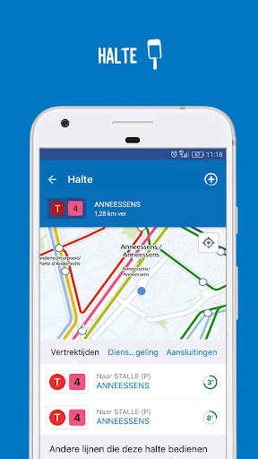 Als u een lijn in detail bekijkt, krijgt u ook informatie over gelijklopende lijnen. Hierdoor kan u uw reis aanpassen en optimaliseren door de eerstvolgende lijn te nemen die langskomt aan de halte.