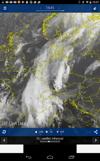 De sat24.com app biedt de beste realtime satellietinformatie voor Europa en andere continenten . De weer satellieten bieden om de 5 minuten nieuwe hoge resolutie beelden aan . Daarnaast biedt de Sat24,com app verschillende actuele en verwachte neerslagradars voor landen zoals : Duitsland , Nederland , het Verenigd Koninkrijk en Frankrijk.