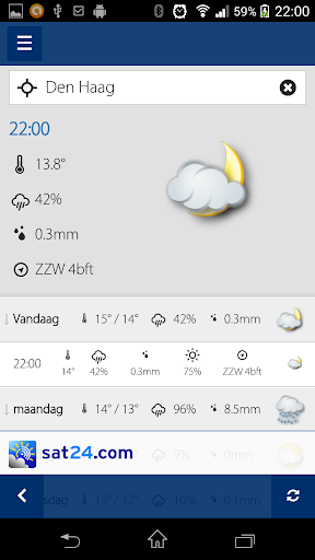 De sat24.com app waarschuwt u wanneer er regen op komst is. Deze weer app waarschuwt voor elk type neerslag, regen, sneeuw of hagel. U kunt regen alarmeringen voor plaatsen in Europa instellen.
