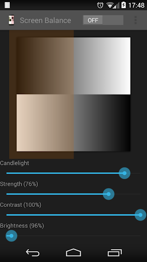 ✓ Eerste Android-app om aanpassing van de witbalans van de schermen toe te staan - dit zal u laten definiëren hoe warm / Koel het scherm verschijnt en kan handig zijn om oneven tinten te corrigeren die op veel schermen te vinden zijn.