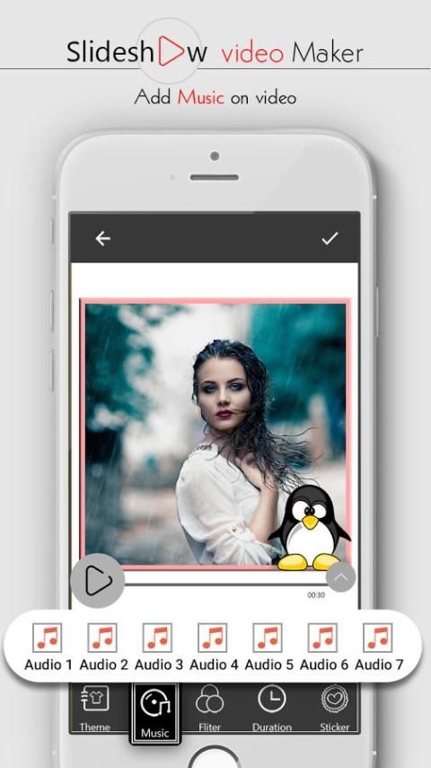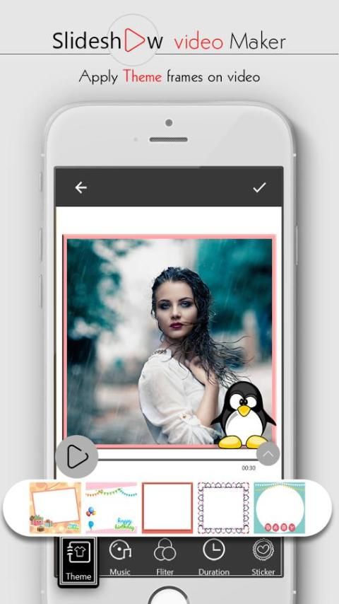 2 - Choose the themes frame, add your own favorite music, add stickers, edit, playback and save.