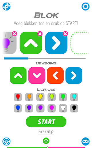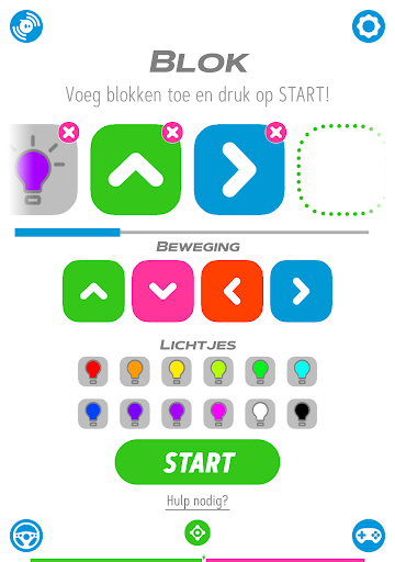 Leer de basis van het programmeren door je robot te bedienen met kleurrijke blokken voor beweging en licht.