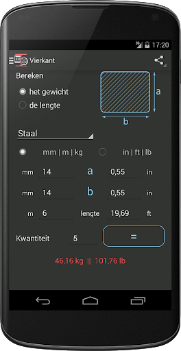 Deze app zal u helpen bij het berekenen van het gewicht of de lengte van het gekozen metaal, in verschillende vormen. Met behulp van deze calculator kunt u de lengte en haal het gewicht van het metaal, en Vice versa