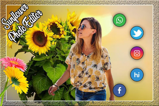 Versier je foto's met prachtige bloemen en maak ze mooi en romantisch! Kies bloemenframe-effecten om een afbeelding van u en uw liefde mooier te maken. Flower Photo Frames Editor Directeren onmiddellijk uw foto's met deze betoverende gele bloemkaders op uw mobiele telefoon om uw herinneringen onvergetelijk te maken.