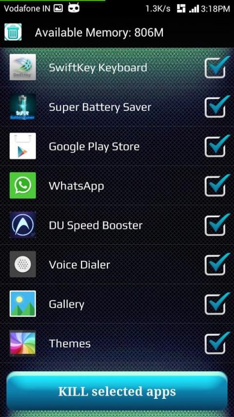 Super Battery Saver generates “Memory Boost” icon on your menu screen apart from Super Battery Saver icon. This button helps you to kill unwanted process in one click and make your phone faster. It releases RAM from your devices by killing unwanted processes.