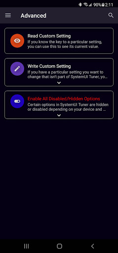 Deze app heeft als doel dat op te lossenprobleem, door een vervanging te bieden.Voor het grootste deel is dit een replica van het systeem UI Tuner van Android 'Er zijn echter een paar extra goodies die de oplossing van Android ' niet standaard opneemt.Elke schakelaar werkt op elk apparaat).