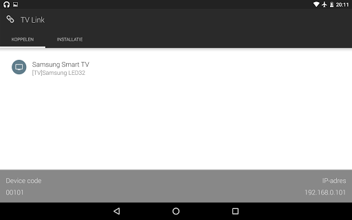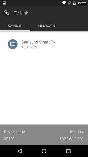 Installeer en draai de TV Link op uw Smart TV/BlueRay speler alvorens verbinding te maken met de Android client. U hoeft niet handmatig TV Link op uw Smart TV / BluRay speler te starten nadat de installatie voltooid is.
