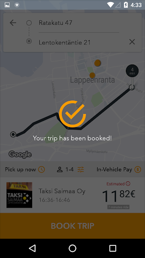Bestel een taxi-cabine in Lappeenranta regio in Finland van Taksi Saimaa Oy met je iphone