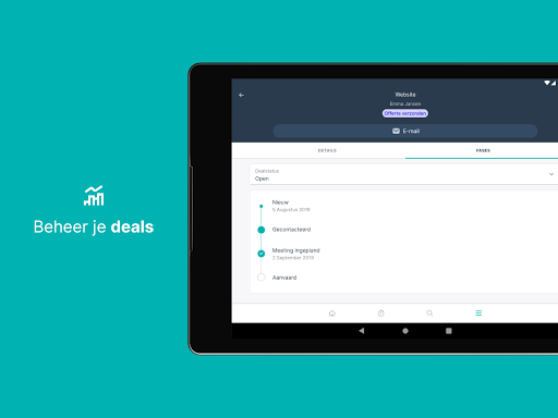 📈 Beheer je deals op elk moment. Verkoop onderweg, update CRM-gegevens in realtime en sluit je deals sneller af. Voeg nieuwe deals toe of verplaats bestaande deals in je dealflow.