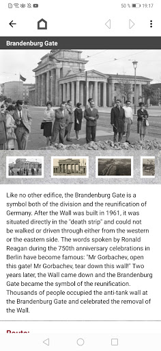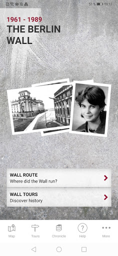 The Berlin Wall separated East and West for 28 years, two months and 28 days. It divided the city, ran through buildings, made streets impassable, tore families, friends and lovers apart. But where exactly did the wall run? The app 'The Berlin Wall' gives a detailed answer. The exact course of the former wall is marked on an interactive map. At historically significant locations between the Brandenburger Tor and Potsdamer Platz, there are photos, audio clips and texts available on the subject. A free data package with further information on places of historical significance throughout Berlin and Potsdam can be downloaded within the app. The app serves as an interactive travel guide on site as well as a general information resource.