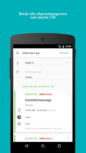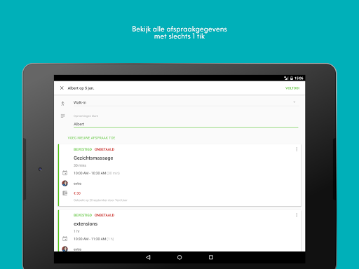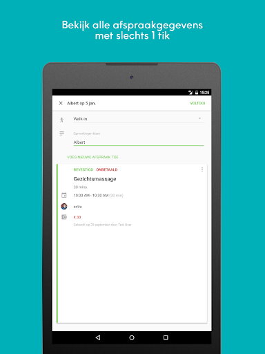 • Zet gemakkelijk afspraken van nieuwe, bestaande of inloopklanten in de agenda