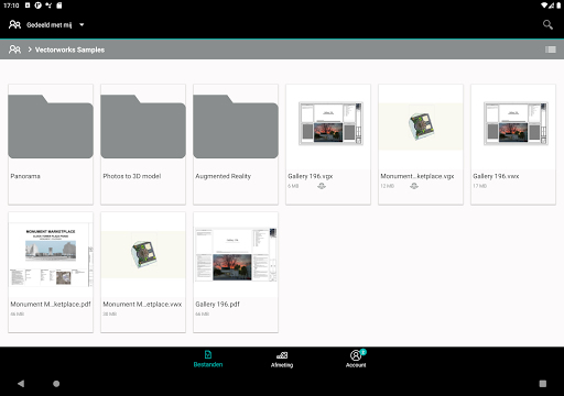 • Vectorworksbestanden opladen naar uw Vectorworks Cloud Services bibliotheek, Dropbox of Google Drive