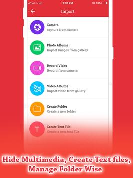 - Incognito Browser :- an inbuilt private browser for your safe browsing of private websites and downloading of video from web and lock instantly inside secret locker and leaves no tracks in your system.