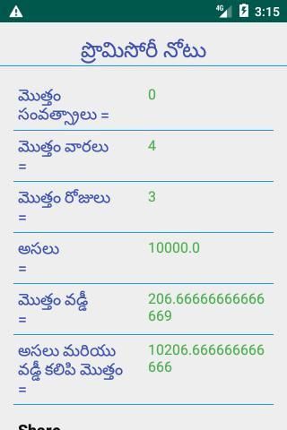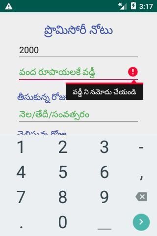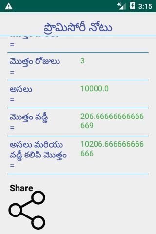 vaddi lekkalu, village calculator,promisory note calculator .