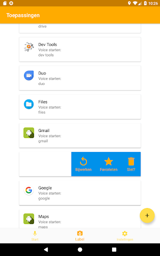 Deze applicatie is voor het snel starten van contacten, applicaties, instellingen op naam of spraaklabels die door u zijn toegewezen tijdens de bewerking.