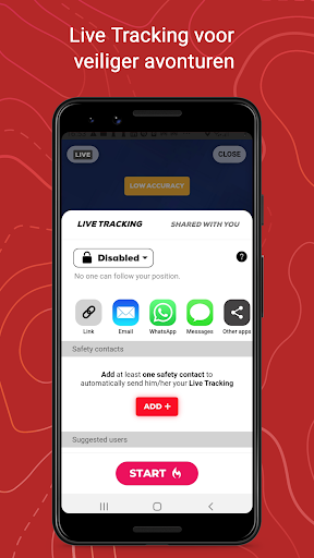 Deel uw realtime locatie met uw contacten. Zij ontvangen een link met uw GPS-locatie, route en live statistieken.