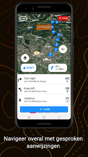 - Turn-by-turn navigatie met gesproken instructies.