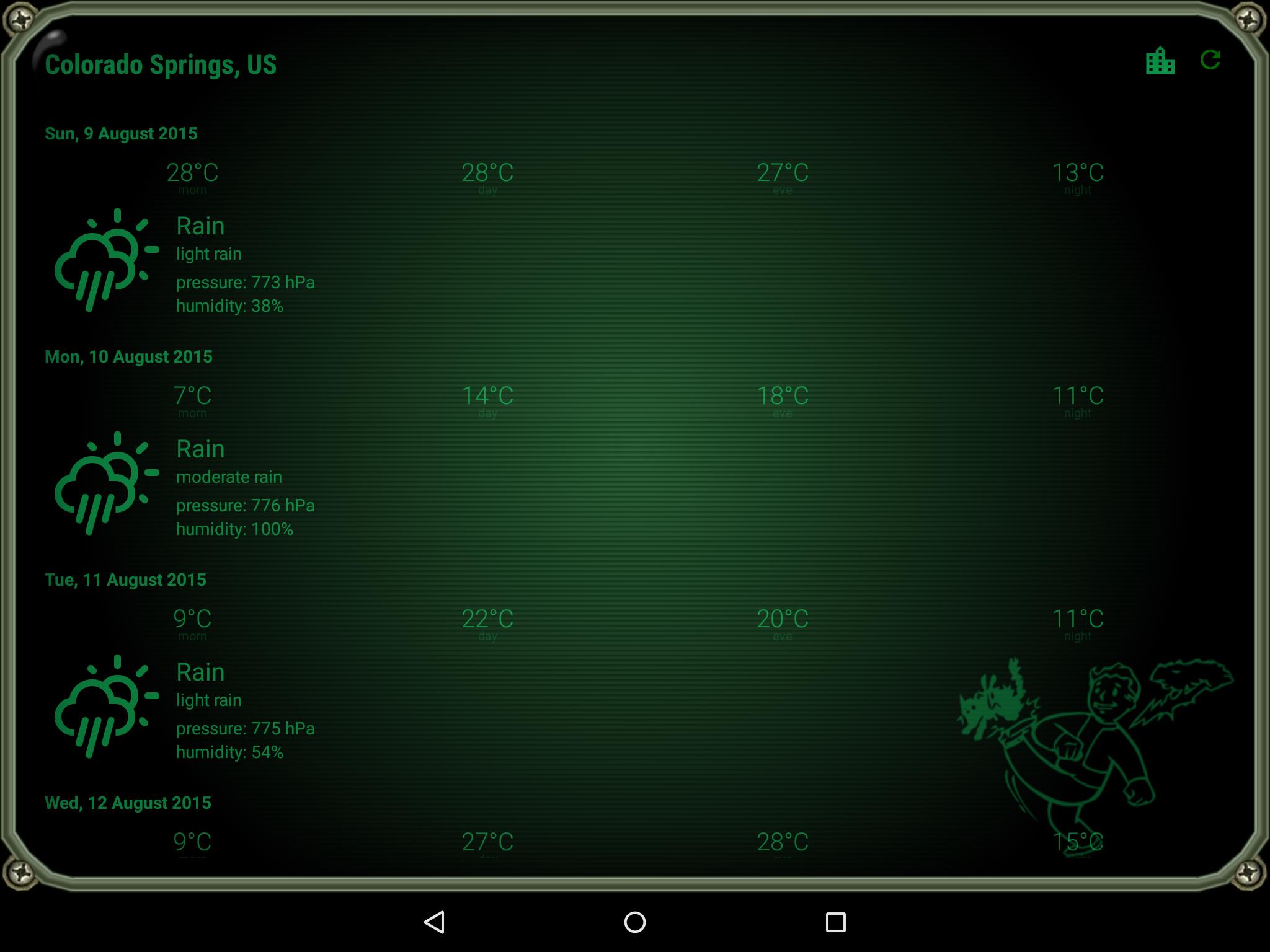 The Weather Informer in the "Pipboy" style from the famous Fallout Game. It use http://openweathermap.org/ for data.