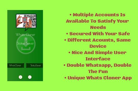 Disclaimer: Whats Cloner & Status Saver 2019 is created by us, and it not an official WhatsApp application and not associated with WhatsApp Inc.
