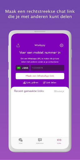 • Maak je eigen WhatsApp-link vanaf WtsAppy en deel ze met zij van wie je wil dat ze je contacteren op WhatsApp, je bent nog slechts een klik verwijderd in plaats van nummer te delen en contact op te slaan. Een WhatsApp-link is noodzakelijk, vooral als je een bedrijf leidt, nu kan het in 10 seconden van WtsAppy!