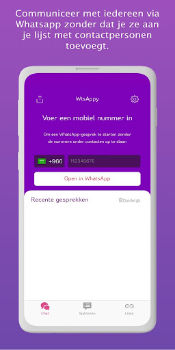 • WtsAppy geeft je de mogelijkheid om een gesprek te starten rechtstreeks op WhatsApp door het nummer te kopiëren en te plakken in de WtsAppy app.