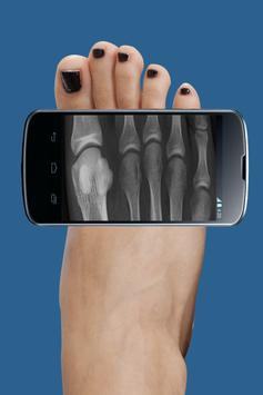 Tilt your phone over the body part where you want the x ray image, like if you want X-Ray of left feet, then move the phone over the left feet after pressing left feet scan button and see the x-ray of left feet. Similarly you can do for legs, fingers, head, left feet, right feet and more.
