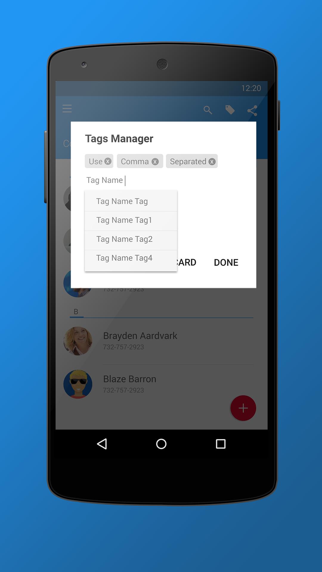*Easily group your contacts with simple labels, like 'restaurant', 'agent', or 'poker'
