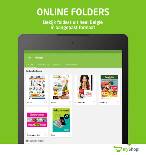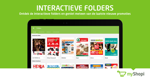 Doorblader de reclamefolders van je favoriete winkels in de myShopi app, dé reclamefolder app voor Android op smartphone en tablet. Je vindt er bijna wekelijks alle actuele Belgische folders en thematische folders van Lidl, Aldi, Colruyt, Carrefour, Delhaize, Kruidvat, Gamma, Brico, Blokker, Media Markt en vele andere winkels in België. Zoek je een specifieke promotie uit een reclamefolder, dan vind je die via de zoekbalk op myShopi.