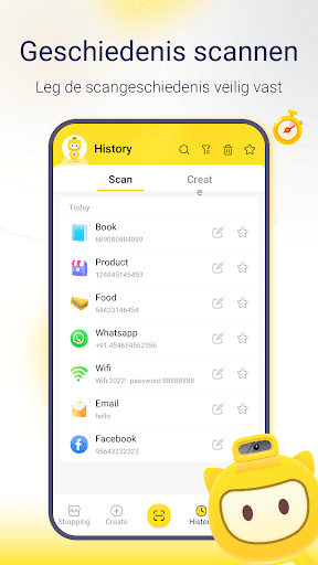 Een record van alle gescande en gemaakte QR -codes wordt permanent opgeslagen, en de geschiedenislijst maakt het gemakkelijk om de geschiedenis van bezochte locaties en QR -codelinks te beheren en te wissen.