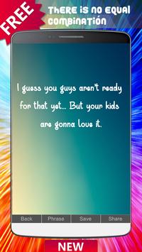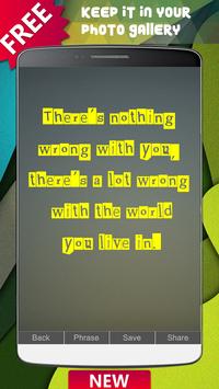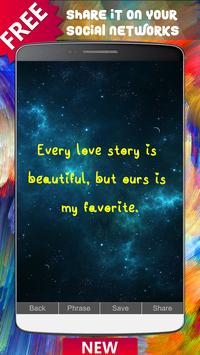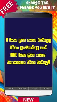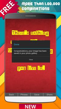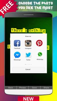 There are more than 10 million possibilities. Choose the photo you like the most, change the phrase you like the most, save it in your photo gallery or share it in your favorite social networks like Facebook, Instagram, Twitter, Snapchat or WhatsApp.