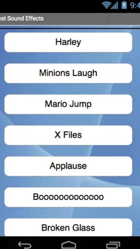 This app includes sound effects such as laser or flangs also animal sounds, sounds of weapons and some of the most popular audio sounds like Mario Bros, The ox Minnions files.