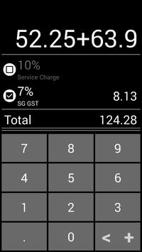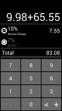 Add different amounts together, select or un-select options for service charge or gst, and watch the magic unfold!
