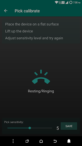 The app uses accelerometer reading to detect pick up motion and proximity sensor reading to detect wave motion. It is advised to change the "Pick sensitivity" if necessary. No service is constantly running, hence this app won't drain any battery.
