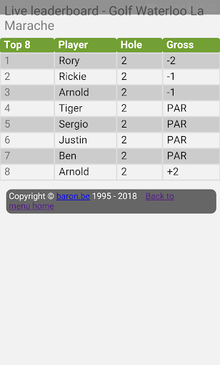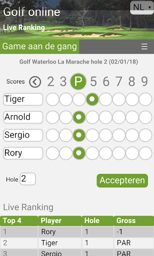 1) Tijdens een golftoernooiijn worden mijn scores en ranking met de andere golfers live gedeeld, alsook de score en ranking van de andere deelneemers.