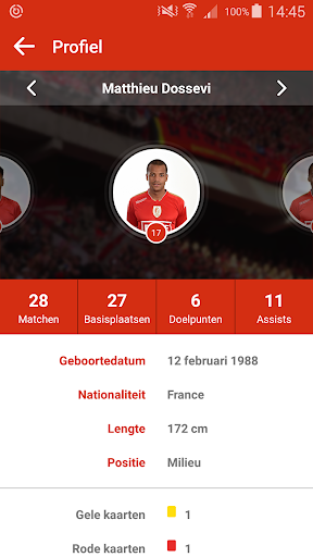 - STATISTIEKEN/KALENDER/KLASSEMENT : blijf op de hoogte van het parcours van de ploeg in de verschillende competities.