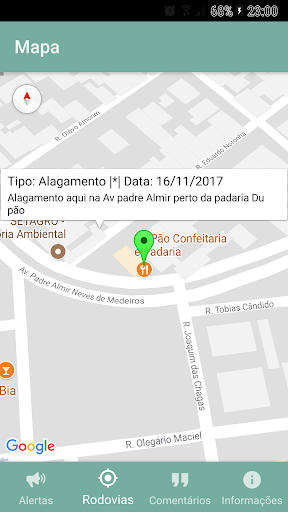 - Mapa com GPS possibilitando enviar a localização de incidentes, o qual é fixado no mapa por 24 horas;